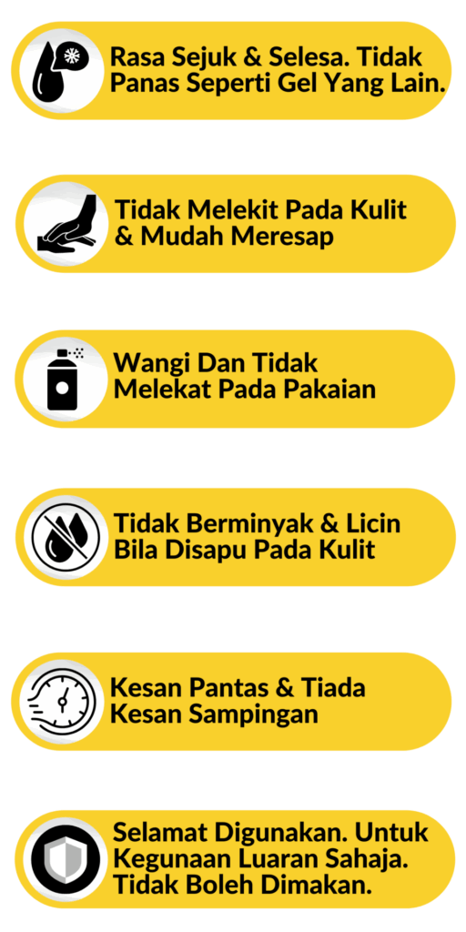 Rasai perubahan selepas sapu 3 kali sehari di tempat yang rasa kebas, lenguh & sakit seperti tangan, kaki & pinggang.